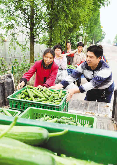 眼下,不少蔬菜瓜果都到了收获季节,市场供应有了充足的保证。6月1日,四川省岳池县乔家镇廖坝村村民把水果黄瓜送上车。肖勇摄