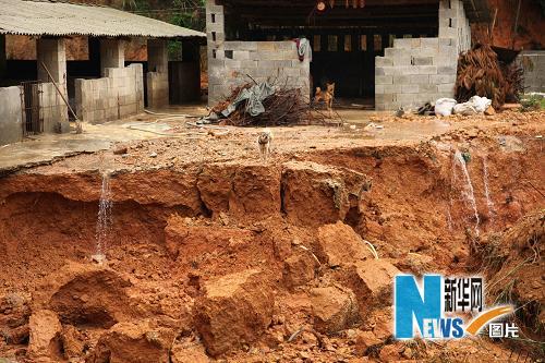 6月15日,南宁市郊的一个养猪场被洪水冲毁。当日,广西南宁市遭遇暴雨袭击,气象部门发布暴雨红色预警信号,市区部分地段严重内涝,市郊一些农用设施被毁。新华社发(唐辉吉 摄)