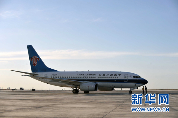 6月14日,中国南方航空公司执飞的包机在乌鲁木齐国际机场做起飞前的准备。当日,中国南方航空公司接到执行国家紧急包机的任务通知,立即启动紧急救援预案,连夜派出两架波音737-700客机,飞赴吉尔吉斯斯坦,接回当地的华人华商和留学生。 新华社记者 赵戈 摄