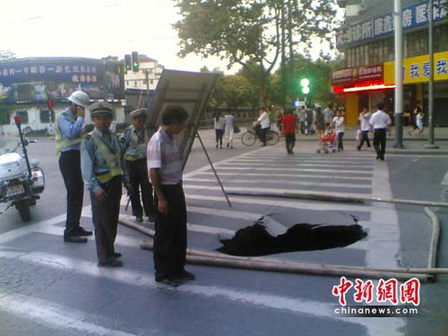 16日下午6时40分许,位于南京闹市区的夫子庙路口地面突然塌陷,露出直径两米、深三米的大坑,令人联想起前期中国多个城市出现的“天坑”。截至16日22时,塌陷现场回填工作进行完毕,围挡已建立。