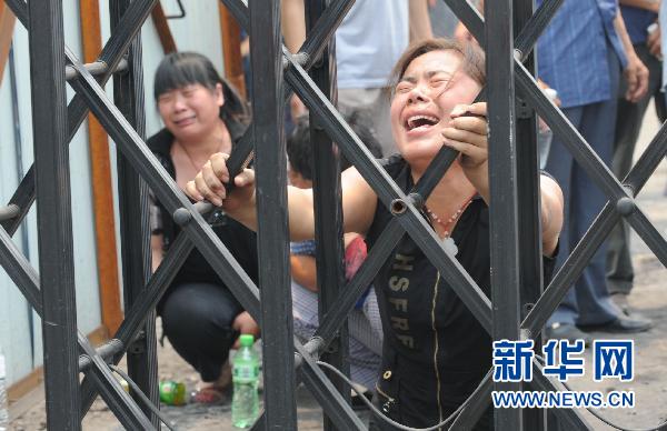6月21日,遇难者家属在煤矿门口痛不欲生。记者从河南省平顶山市政府获悉,平顶山市卫东区兴东二矿井下火药库爆炸事件,初步查明事发时被困72人中已有26人升井,其余46人已遇难。抢险救援工作正在抓紧进行。 6月21日1时40分左右,平顶山市卫东区兴东二矿井下火药库发生爆炸事故。 新华社记者 赵鹏 摄