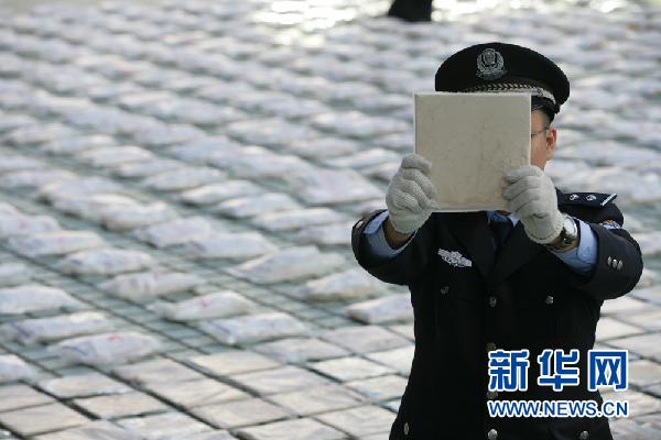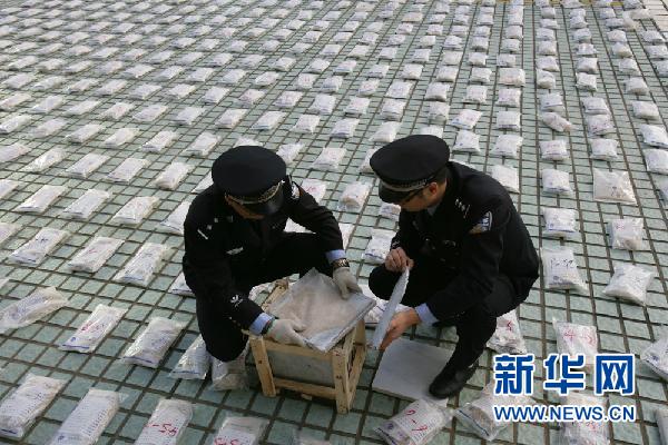 这是被查获的巨额数量的海洛因。新华社发