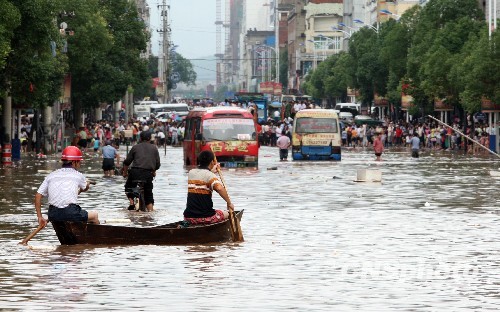 6月20日,江西省东乡县遭遇严重洪涝灾害。自18日20:00至19日17:00时,东乡县平均降雨量达256毫米,居江西省之最,其中6个乡镇降雨量都在200毫米以上,王桥镇最高达343毫米,东乡县主城区三分之二面积受淹。 中新社发 朱文标 摄
