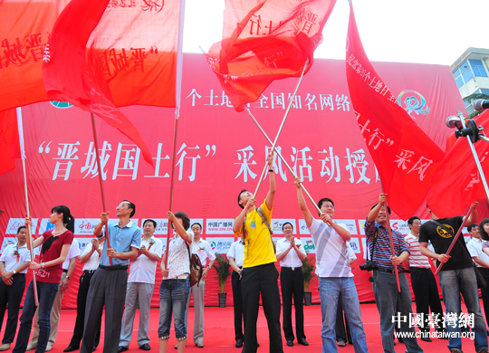 “全国知名网络媒体晋城国土行”采风活动授旗仪式(中国台湾网记者 孙金诚 摄)