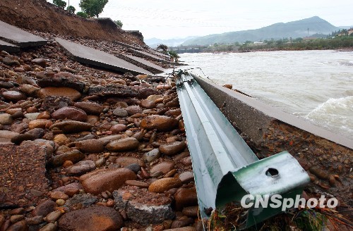 6月23日清晨,被水冲毁路段现场。近日,浙西暴雨导致浙江衢州市柯城区石呈线1Km 400m处发生塌方。目前,被冲毁的路段有40多米,路基150米,车辆和行人已无法通行。 中新社发 江瀛 摄