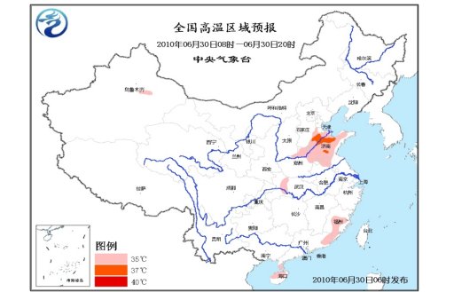 据中国气象局网站消息,中央气象台今日6时继续发布高温蓝色预警,预计,今天白天,黑龙江、山西等地的高温天气将暂时告一段落,河北南部、河南东部和北部、山东大部、安徽北部、江苏西北部、湖北西部、福建中南部的部分地区、广东东部、海南北部等地将会出现35~37℃的高温。另外,预计未来几天,中国主要降雨带将明显北抬。