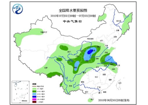 7月1日08时时至2日08时,西藏东部、青海大部、川西高原有小到中雨或雨夹雪;新疆南疆盆地西部和天山山区、西北地区中东部、东北大部、华北大部、黄淮、江淮、江汉大部、江南东北部、海南以及西南大部有小到中雨或阵雨,其中,青海东南部、甘肃东南部、山东西南部、河南东部、苏皖北部等地有大雨,局地有暴雨;上述部分地区并伴有短时雷雨大风等强对流天气。新疆大部、甘肃西部、内蒙古大部、东北大部等地有4~6级风,新疆南疆盆地的部分地区有扬沙或浮尘天气。黄海南部海域将有偏南风4~5级增加到5~6级、阵风7级;东海大部海域、台湾海峡、台湾以东洋面将有4~6级西南风;北部湾、南海大部海域将有4~6级偏南风。