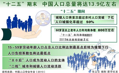 “十二五”期末,我国人口总量将达到13.9亿左右,城镇人口将首次超过农村人口突破7亿。这是记者从中国人口学会年会(2010)上获悉的消息。