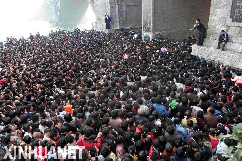 资料图片 在首届“河南文化遗产日”的当天,大批市民和附近的群众涌入龙门石窟景区(2005年11月摄)。新华社记者王颂摄