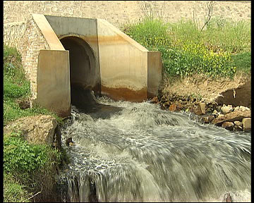 资料图片:一个直径近两米的排污管,正在向渭河排放咸阳的城市污水。(图片来源:央视网)