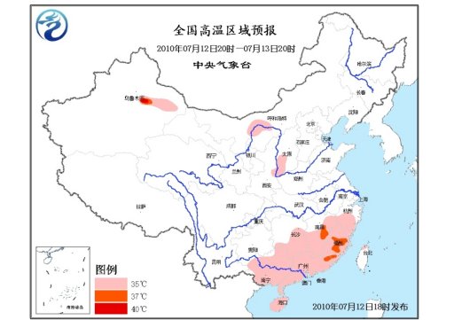 中央气象台7月12日18时继续发布高温蓝色预警:预计,13日白天,内蒙古河套地区、陕西关中东部、山西西南部、湖南中南部、江西中南部和东北部、浙江中南部、福建大部、广东大部、广西大部、海南大部、台湾西北部等地有35℃以上高温天气、局地温度可达37~38℃。