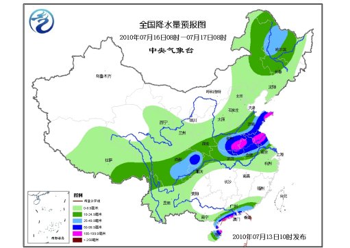 据中央气象台预报,未来10天,中国降雨区范围较广,雨带位置不稳定;江南中南部、华南北部多高温少雨天气;西北地区东部、华北、黄淮、东北多阵性降雨。13-14日,江淮、江南北部仍将有较大降雨;之后,雨区北抬到淮河流域;江南北部将转为高温少雨天气。17日前后,1002号热带风暴“康森”将影响华南沿海。