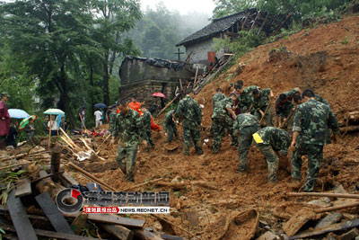 7月12日,花垣县牙酉镇下水村六组由于持续4个多小时的强降雨,于7点20分左右出现山体滑坡,约130多立方泥石流冲毁民房3 栋,6个村民死亡,其中4人为1至5岁的小孩。石林荣摄(图片来源:红网)