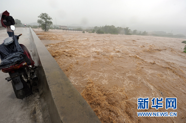 7月13日,山洪通过安徽池州齐石公路一处桥梁。当日,受强暴雨影响,安徽省池州市贵池区暴发山洪,多处道路被冲断,山体滑坡,洪水蔓延,造成梅街、梅村、棠溪三个乡镇45个村的5万多名群众受困。武警官兵、民兵预备役人员和当地干群已全力投入抗洪抢险。目前,无人员伤亡报告。新华社记者 郭晨 摄