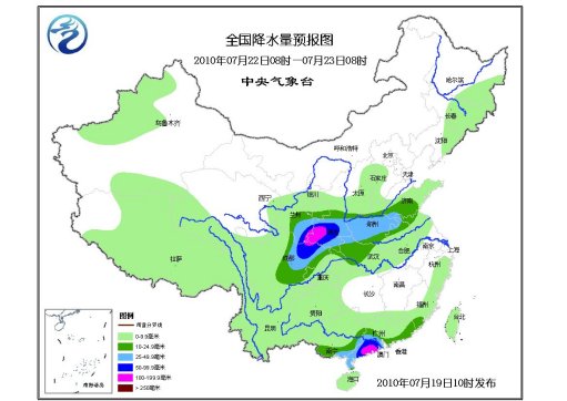 22-25日,西北地区东南部、华北南部、黄淮西部、四川盆地东部、汉水上游等地有40-80毫米降雨,部分地区降雨量有100-150毫米,局部有200毫米左右。