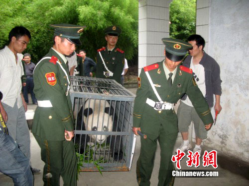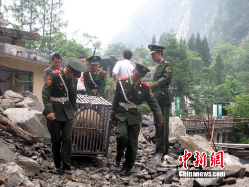 在 “5.12”汶川特大地震中,四川卧龙自然保护区受到重创,经过两年的灾后重建,在武警四川省森林总队卧龙中队官兵的保护下,首批返乡“国宝”于20日顺利回到卧龙自然保护区。