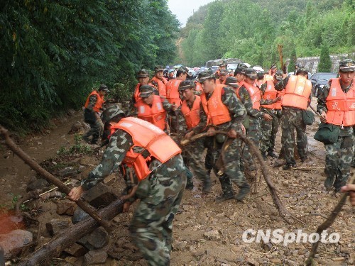事故发生后,栾川县、嵩县出动军民至少4000人昼夜“拉网”搜救。 中新社发 巩卫东 摄