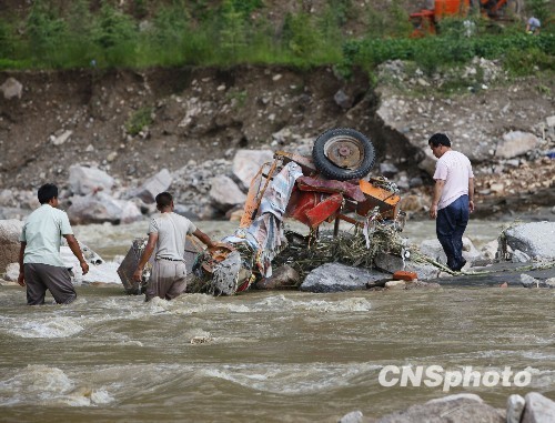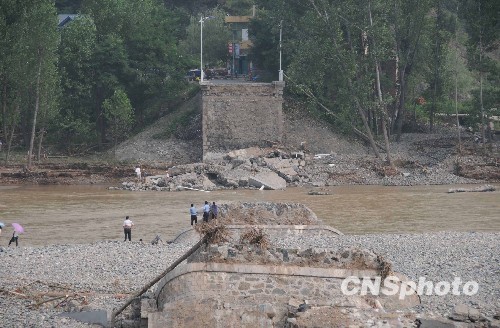 7月24日下午5点20分,河南省栾川县潭头镇汤营村伊河汤营大桥整体垮塌,截至27日晚11点,此事件已造成37人死亡,29人失踪,有1人被成功营救出来。救援指挥部介绍,随着河面水位的降低,泥、沙堆积得越来越厚,救援困难越来越大。 中新社发 豫分 摄