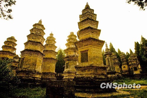 联合国教科文组织第34届世界遗产大会北京时间8月1日审议通过,将中国的登封“天地之中”历史建筑群列为世界文化遗产,包括少林寺常住院、塔林和初祖庵在内的8处11项古建精华有了新的“护身符”。图为嵩山历史建筑群中的少林寺塔林的资料图片。中新社发 王中举 摄