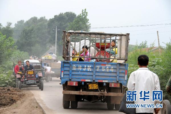 8月4日,第二松花江沿岸各村村民装载着家中的贵重物品和粮食撤离家园。新华社记者马扬摄