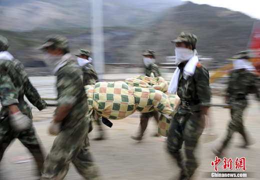 9日,武警官兵在甘肃舟曲泥石流灾区全力搜救。中新社发 廖攀 摄