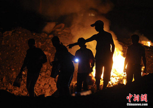 8月9日晚,甘肃舟曲泥石流灾区,民众在黑夜中寻找亲人。中新社发 廖攀 摄