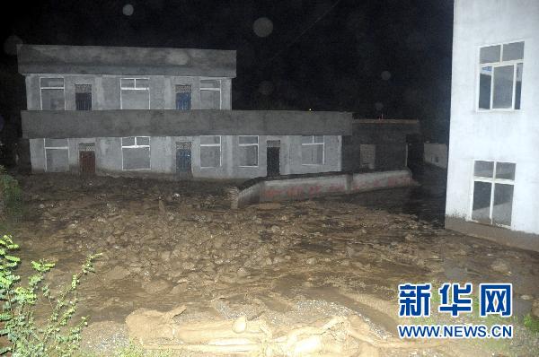 这是8月12日晚拍摄的被泥石流侵袭的甘肃文县石坊乡旧关村民房。 新华社发(刘二银 摄)