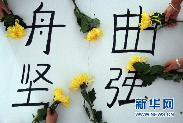 8月14日,山东郯城县新爱婴幼儿园的孩子们为舟曲遇难同胞献上黄菊,寄托哀思。当日,郯城县新爱婴幼儿园开展“情系舟曲大爱无疆”祈福活动,哀悼甘肃舟曲特大山洪泥石流遇难同胞,并为灾区祈福。新华社发(张春雷 摄)