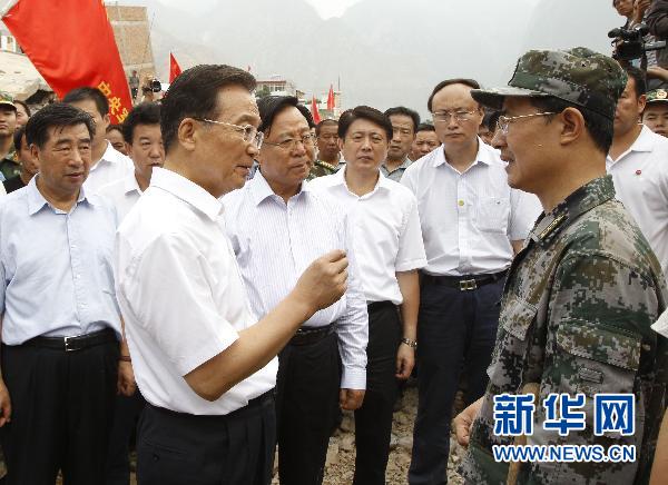 8月9日,中共中央政治局常委、国务院总理温家宝继续在甘肃舟曲县特大山洪泥石流灾区察看灾情,指导抗洪抢险救灾工作。 新华社记者 李学仁摄(资料图)