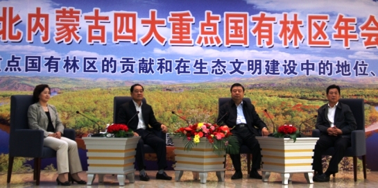 从左至右:黑龙江森工集团党委书记高金芳,内蒙古森工集团公司总经理安国通,吉林森工集团董事长柏广新,黑龙江大兴安岭林业集团公司总经理单增庆。