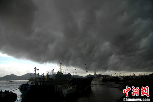 8月31日,浙江省台州市上空布满了厚厚的乌云。中新社发 朱孝钦 摄