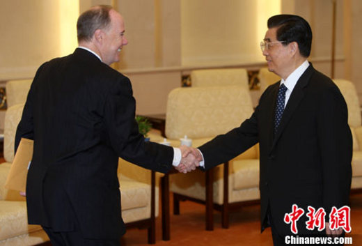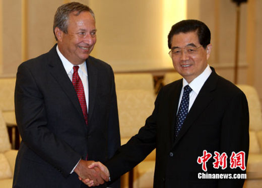 9月8日上午,中国国家主席胡锦涛在北京人民大会堂会见美国白宫国家经济委员会主任萨默斯。中新社记者 任晨鸣 摄