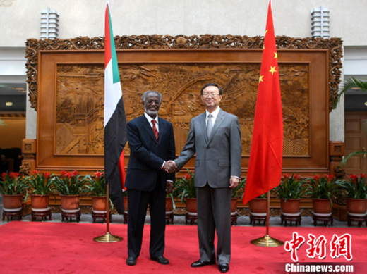 9月14日,中国外交部长杨洁篪在北京会见了应邀来访的苏丹外长库尔提。中新社发 苏丹 摄
