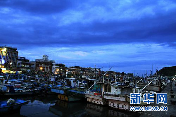 资料图片:9月18日,宜兰南方澳渔港停满船只,躲避强台风“凡亚比”。强台风“凡亚比”逼近台湾,宜兰渔港船只紧急入港,渔民加固船只,应对台风。新华社发