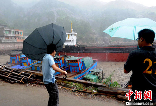 9月19日傍晚,受台风“凡亚比”影响,福州连江县新辉村避风港内风雨交加。中新社发 刘可耕 摄