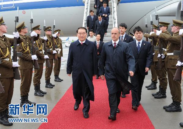 资料图片:9月21日,中共中央政治局常委李长春抵达塔林,开始对爱沙尼亚共和国进行正式友好访问。这是爱沙尼亚政府官员等前往机场迎接。新华社记者马占成摄