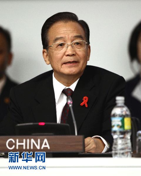 当地时间9月22日,国务院总理温家宝在纽约出席联合国千年发展目标与艾滋病讨论会并讲话。 新华社记者 姚大伟摄