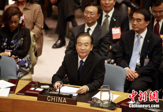 中国总理温家宝当地时间9月23日在纽约联合国总部出席安理会首脑会议并发表讲话。中新社记者 孙宇挺 摄