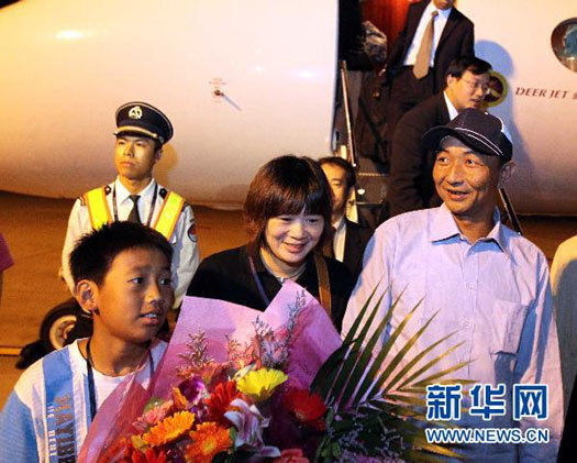 9月25日凌晨,被日方在钓鱼岛海域非法抓扣的中国渔船船长詹其雄搭乘中国政府派出的包机安全返抵福州。外交部部长助理胡正跃、福建省副省长洪捷序到机场迎接。