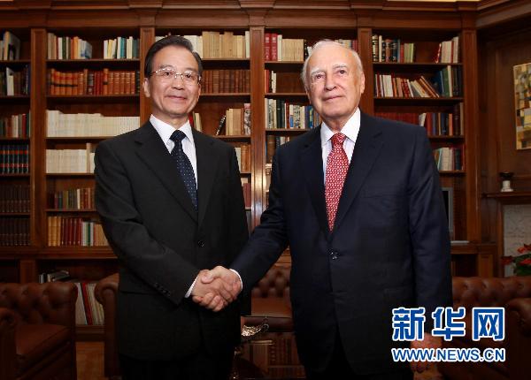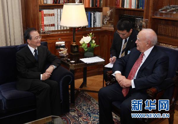 新华网雅典10月3日电(记者赵承 梁业倩 冯坚)中国国务院总理温家宝3日在雅典会见希腊总统帕普利亚斯。