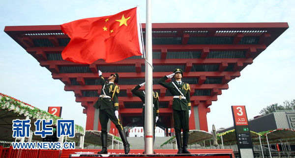 由246个国家和国际组织、逾7000万人次参观者共襄盛举的上海世博会行将闭幕。人们在黄浦江畔依依不舍之时,难忘近6个月来,一张张灿烂的笑脸,一行行动情的眼泪。这是10月1日,上海世博会举行中国国家馆日升国旗仪式。 新华社记者费茂华摄