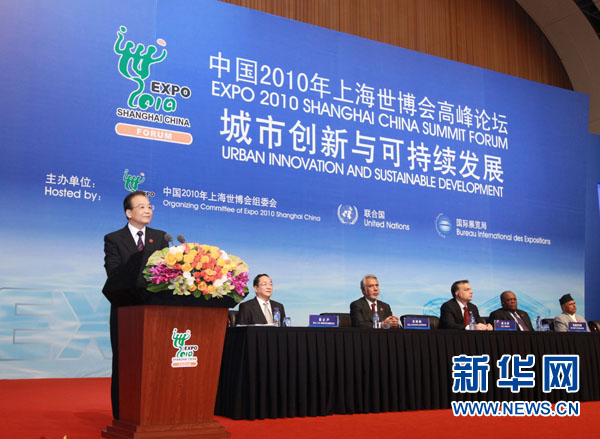 10月31日,中国2010年上海世博会高峰论坛在世博中心开幕,国务院总理温家宝出席论坛并发表主旨演讲。当日,中国2010年上海世博会高峰论坛在世博中心举行,会期一天。 新华社记者庞兴雷摄