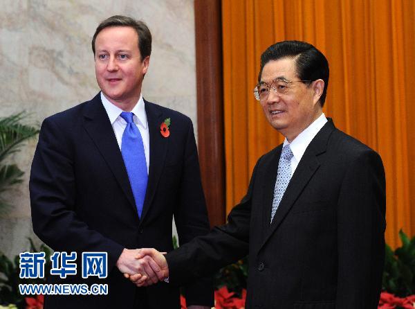 11月10日,国家主席胡锦涛在北京人民大会堂会见英国首相卡梅伦。新华社记者 饶爱民 摄
