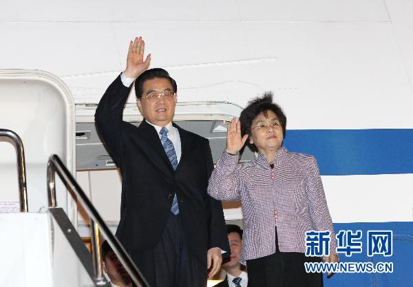11月12日,中国国家主席胡锦涛抵达日本,出席在横滨举行的亚太经合组织第十八次领导人非正式会议。 新华社记者兰红光摄