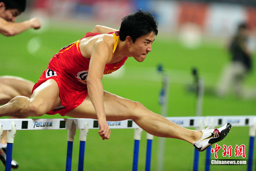 11月24日,广州亚运会男子110米栏决赛,刘翔以13秒09的成绩夺得金牌,这一成绩打破了亚运会纪录。刘翔以一场酣畅淋漓的胜利宣告了自己的回归。中新社记者 陈文 摄