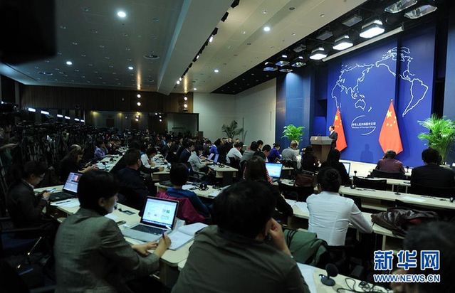 资料图片:10月12日,记者在外交部新发布厅内参加新闻发布会。新华社记者 金良快 摄