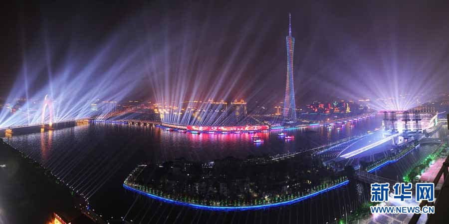 11月27日,珠江畔灯火璀璨。当日,第16届亚洲运动会闭幕式即将在广州海心沙岛举行。 新华社记者郭大岳摄