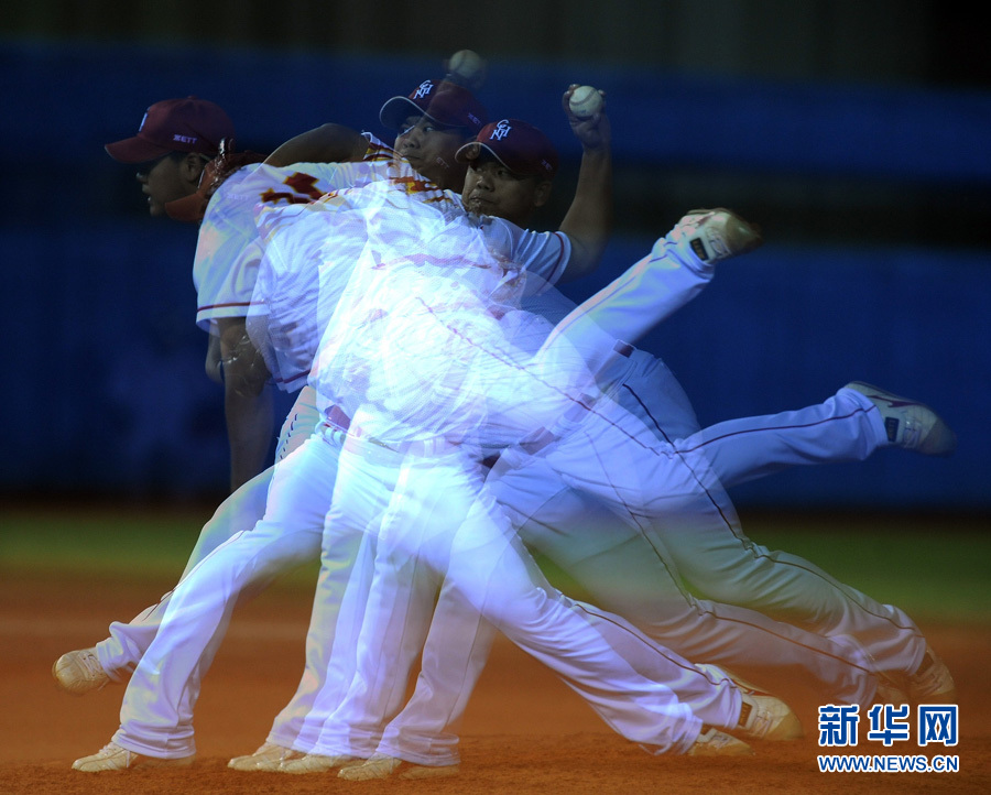 “分身”有术11月16日,中国队投手卜涛在比赛中投球(多重曝光)。当日,第16届亚运会棒球预赛第12场比赛在泰国队与中国队之间进行,中国队以7比0战胜泰国队。新华社记者杨俊江摄