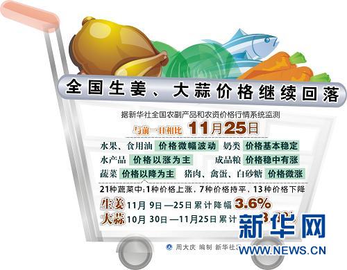 图表:全国生姜、大蒜价格继续回落 新华社发 资料图片