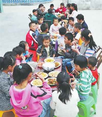 湖北建始“心一家留守儿童服务站”,图为留守儿童吃午餐。6年来,“心一家”先后收留、代管了100名多留守儿童 杨顺丕 摄